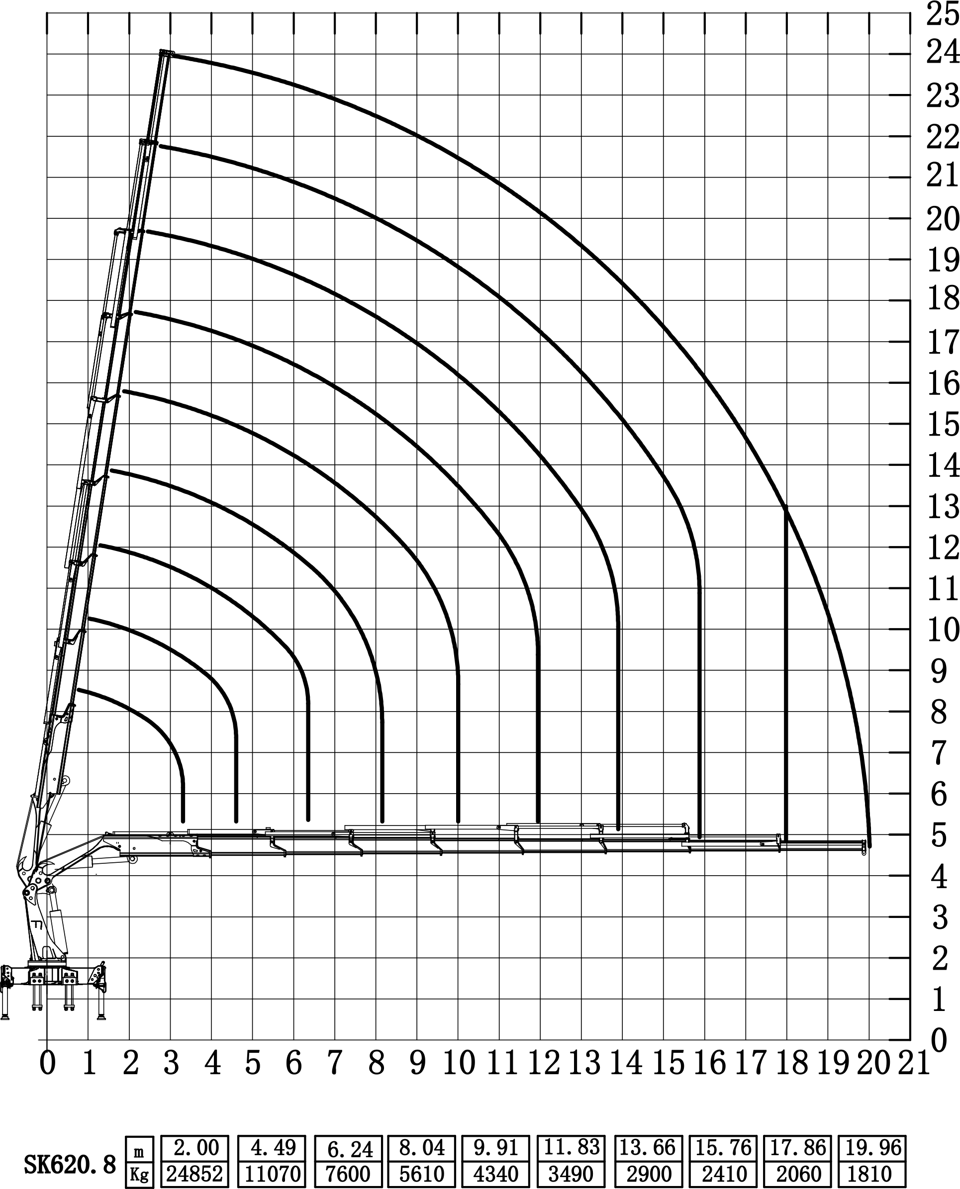 * 以上起重参数为厂内最大测试数据,实机出厂起重参数按国家标准进行标定。