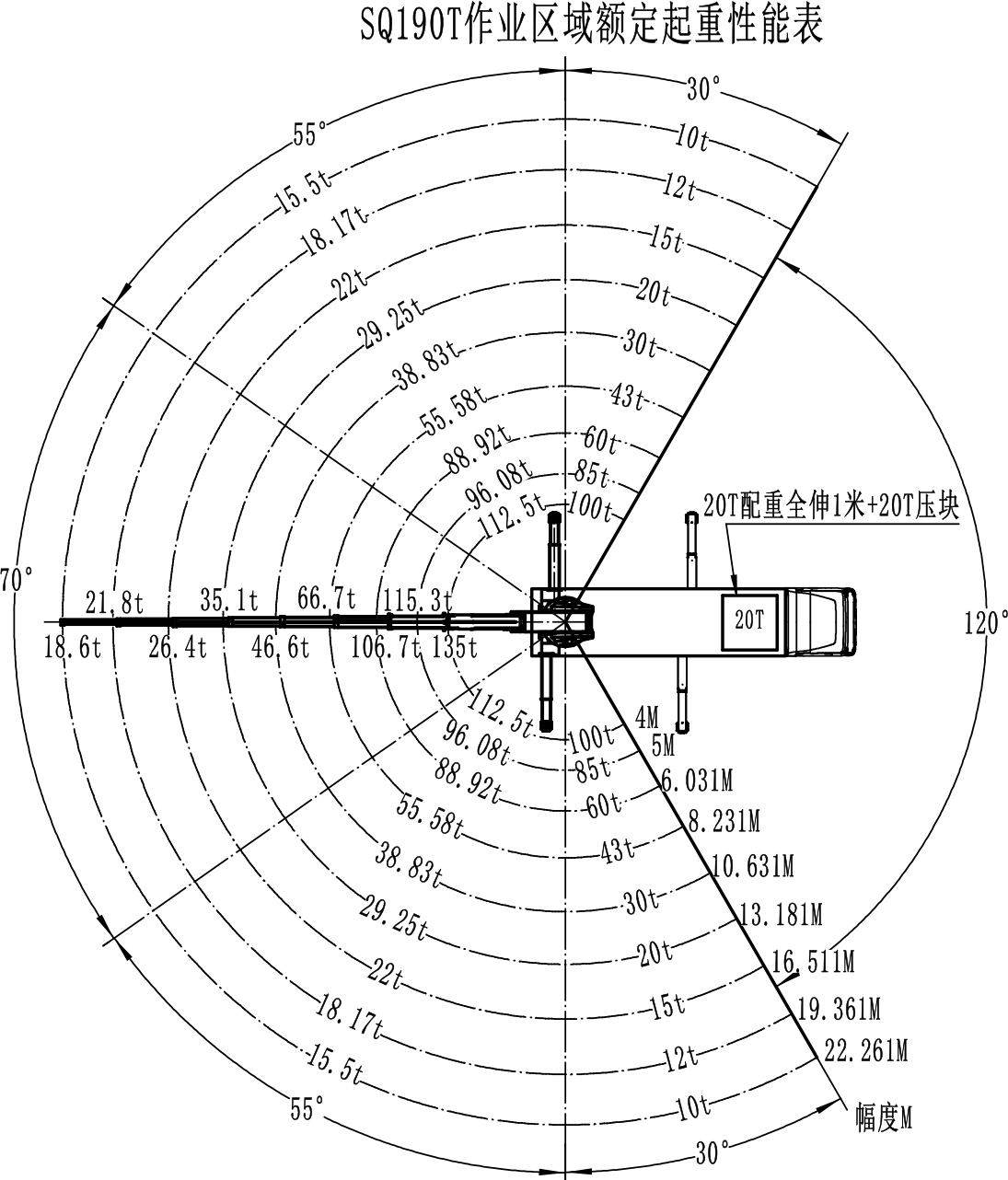 * 以上起重参数为厂内最大测试数据,实机出厂起重参数按国家标准进行标定。
