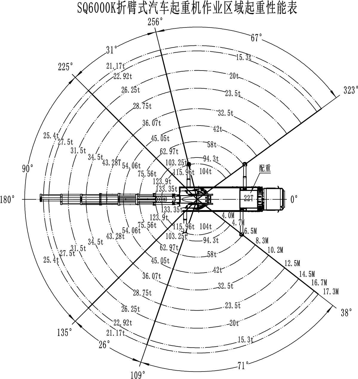 * 以上起重参数为厂内最大测试数据,实机出厂起重参数按国家标准进行标定。